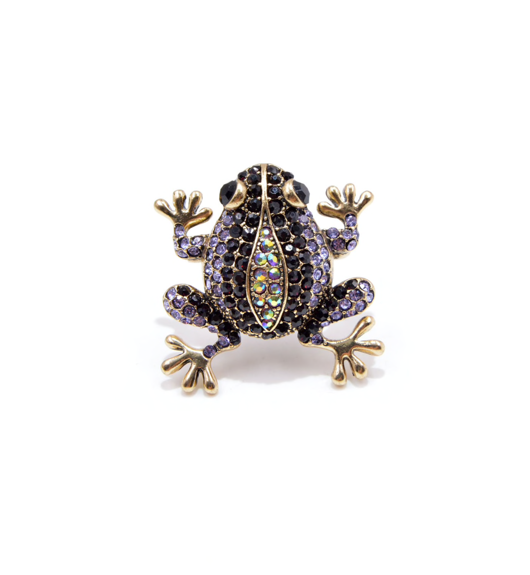 Take a leap of fashion with our sparkling Purple Crystal Frog Brooch! Whether you're hopping into a new look or just need a little extra style, this bejeweled critter will be your perfect companion.
