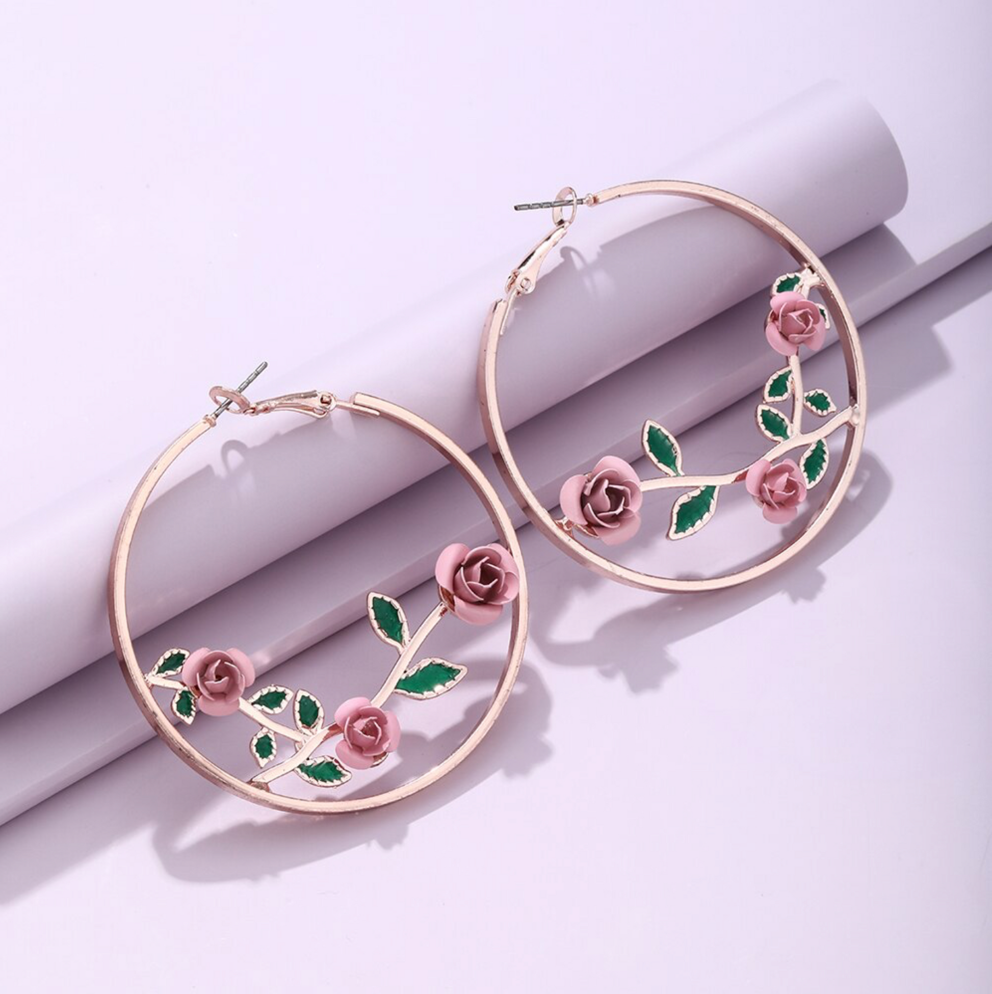 These floral hoop earrings blend elegance and charm, making them a must-have for those who love statement accessories.