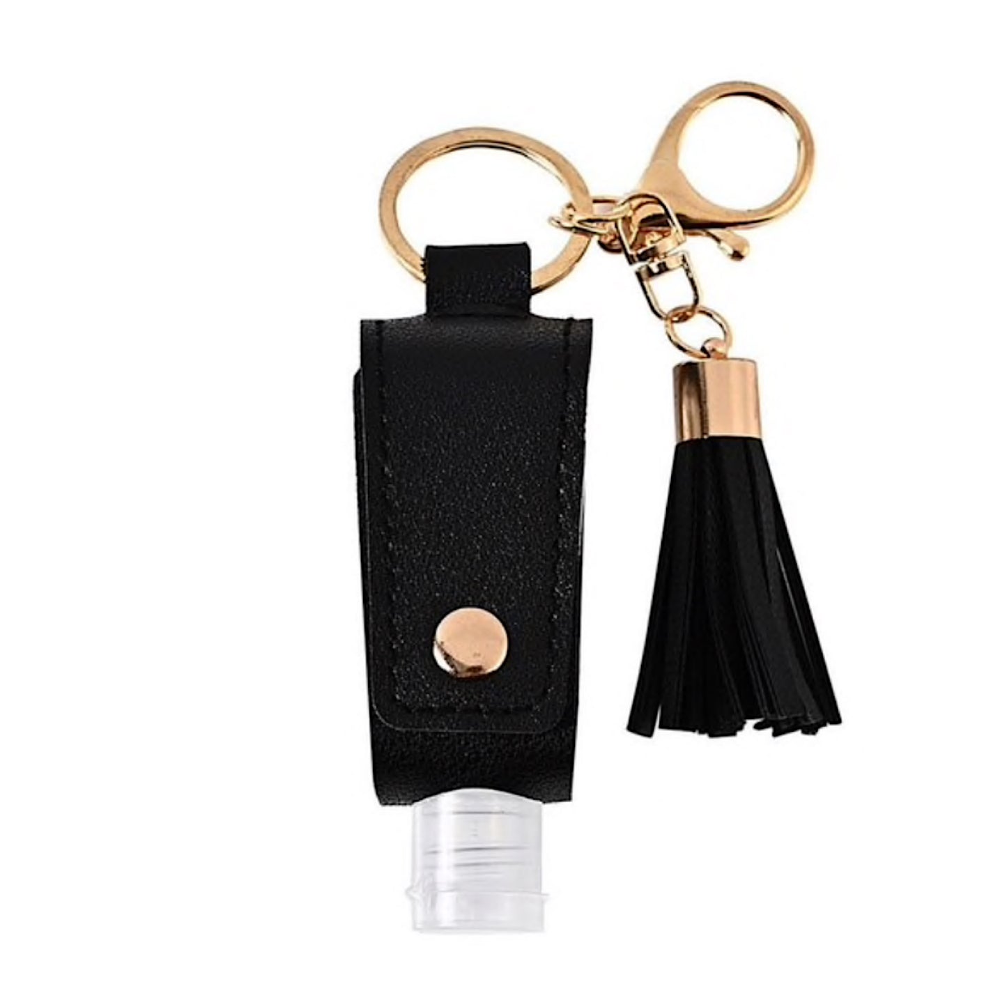 Black Goldtone Tassel Hand Sanitizer Keychain With Empty Bottle