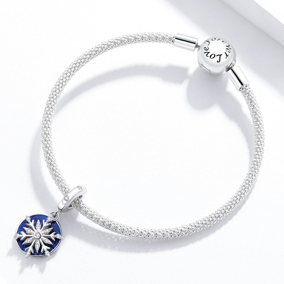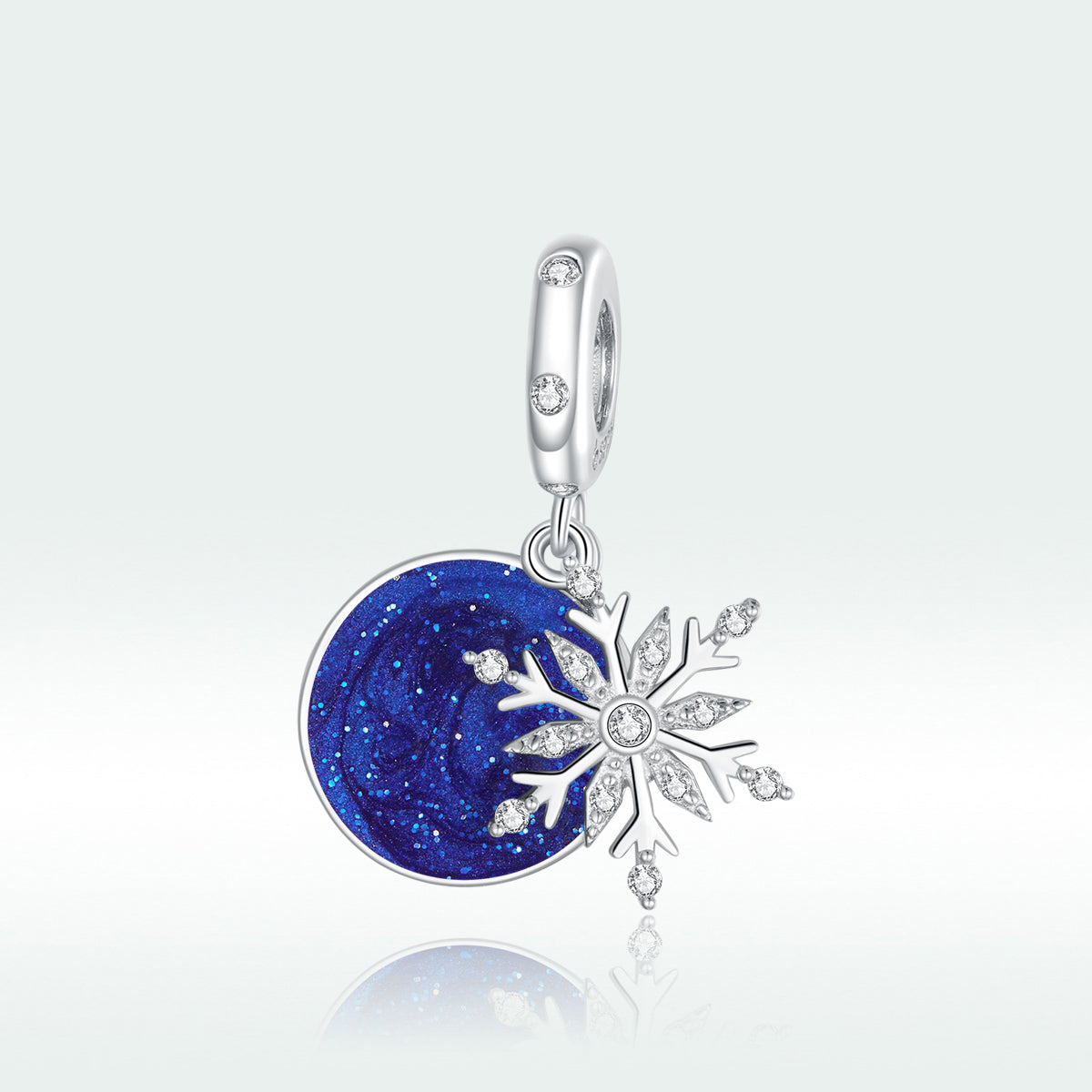 Make a statement with our Blue Cubic Zirconia & Sterling Silver Disk & Snowflake Charm. Its beauty allows you to express your unique style while enjoying the elegance and sophistication that this charm brings to any outfit.
