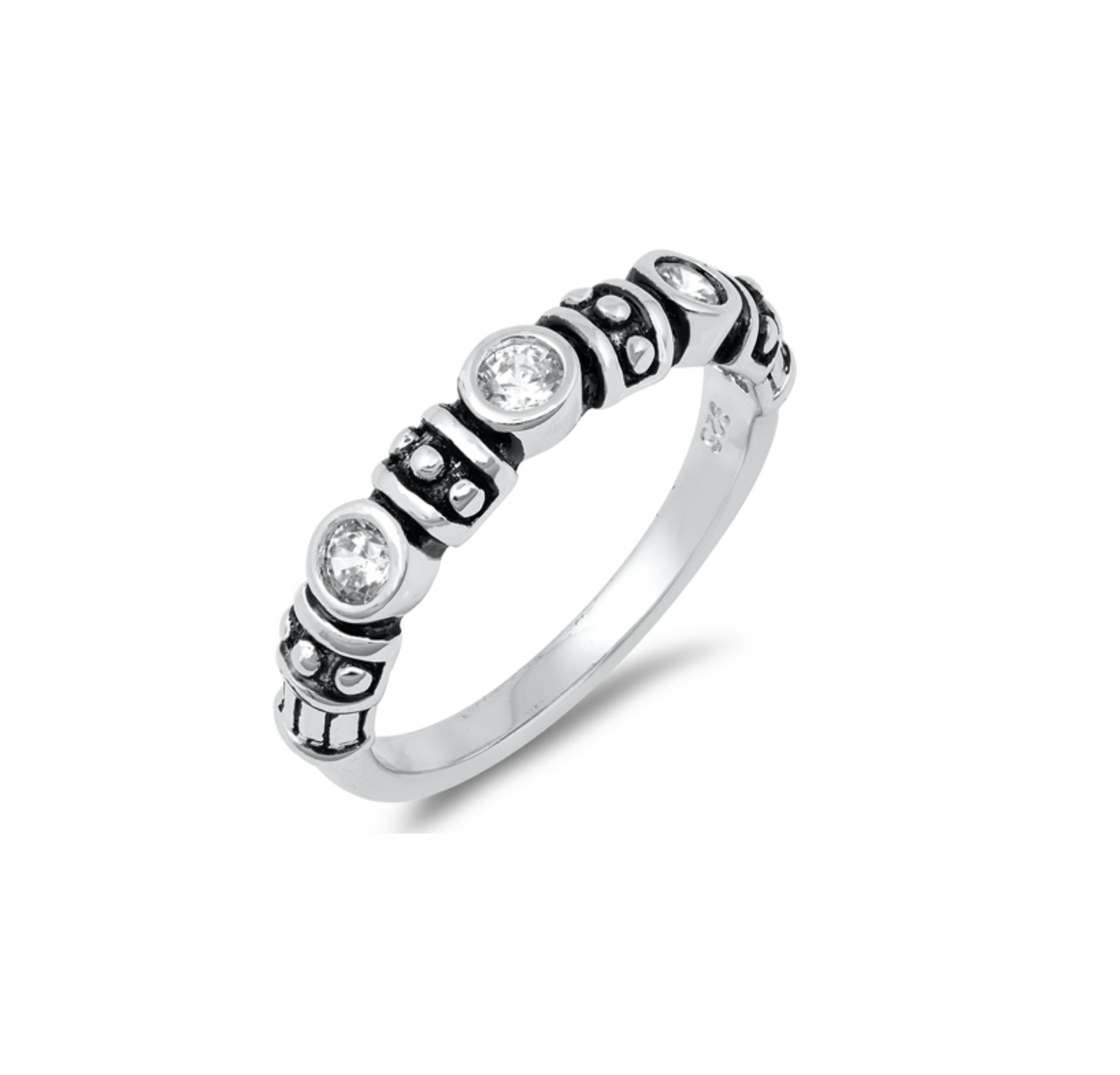 Cubic Zirconia & Sterling Silver-Plated Tri-Stone Bevel-Set Ring