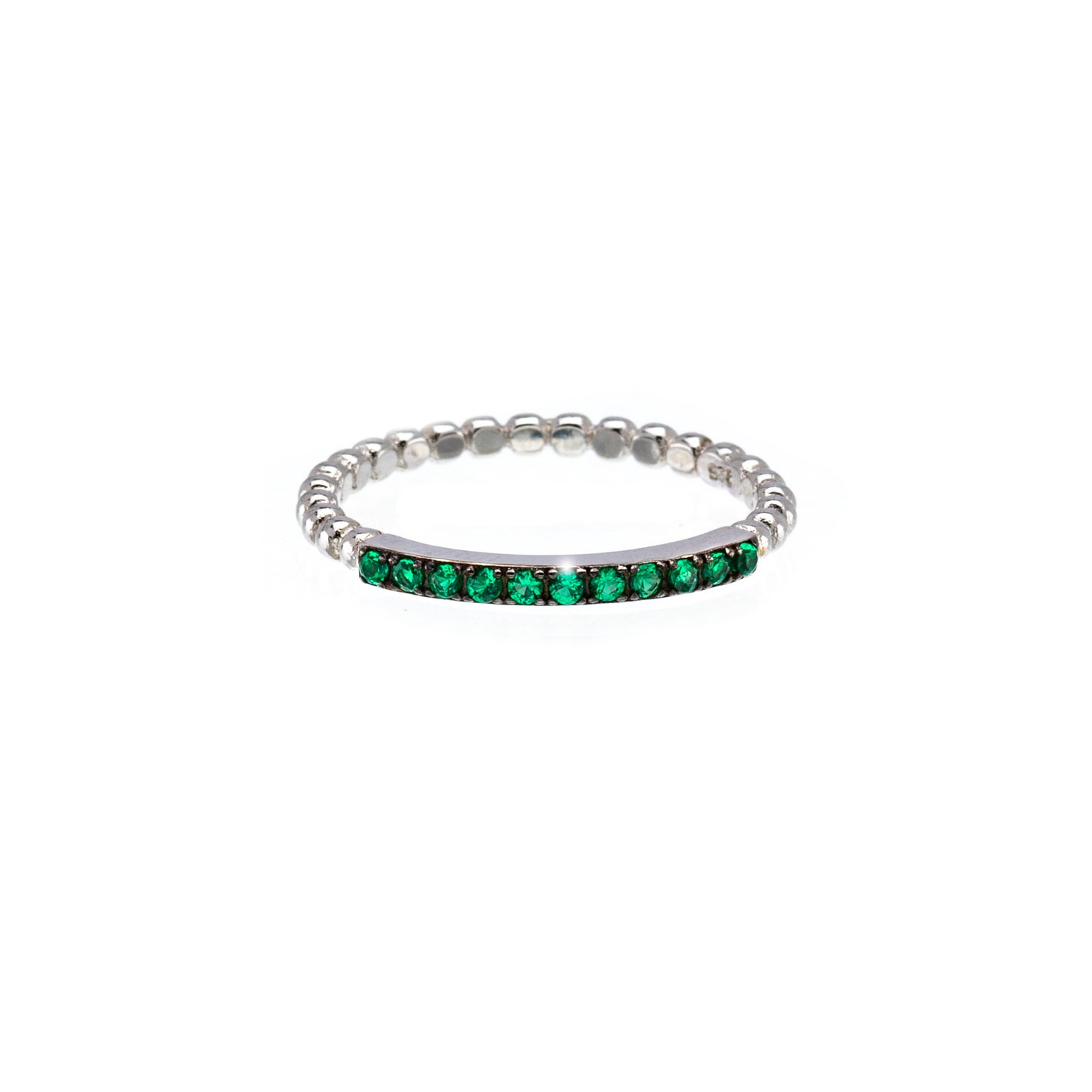 Green Cubic Zirconia & Sterling Silver Bar Ring