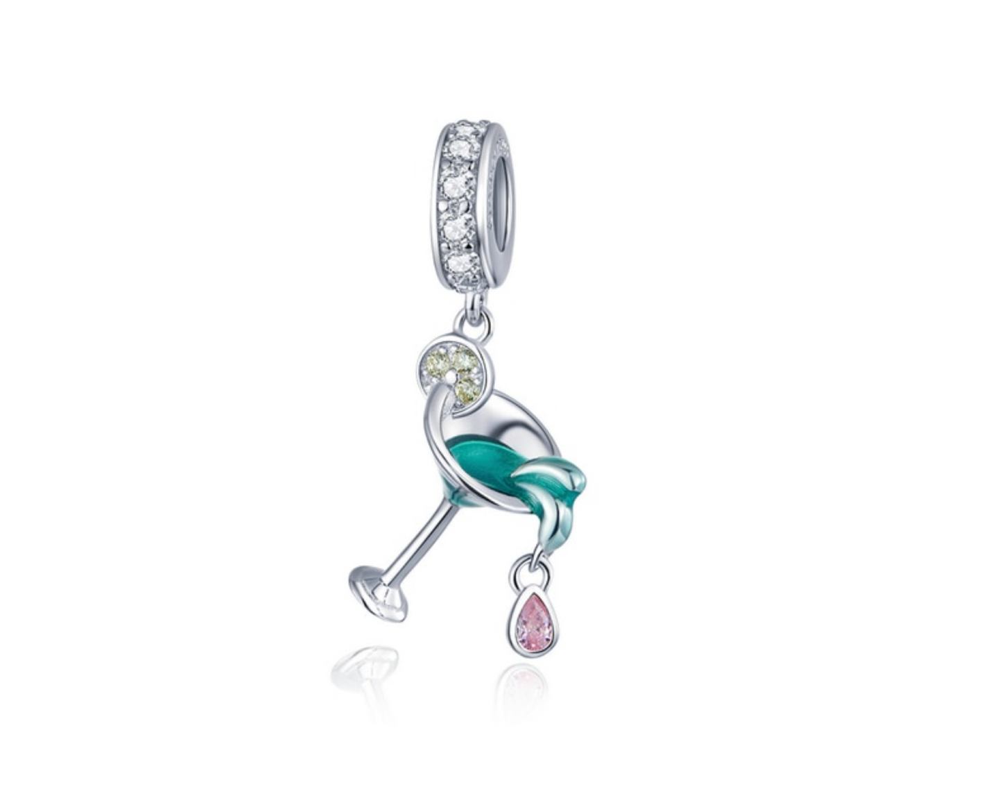 Sterling Silver Blue Pink Martini Dangling Charm