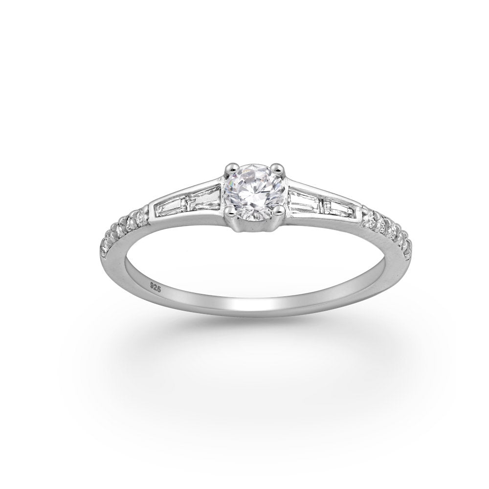 Sterling Silver & CZ Baguette Pave and Circular Band Ring